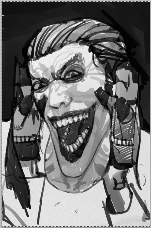 This sketch was done with the idea that we will show the beasts in the background. It's less dramatic than the others, and the butt-shot is open for abuse across the internet.